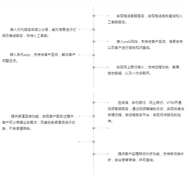 - 全媒體多渠道接入:音頻、視頻、短信、Email、微信、微博、Web Chat實現(xiàn)統(tǒng)一管理/統(tǒng)一排隊/跨渠道服務(wù)