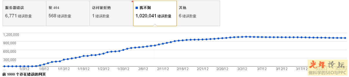 下面是另一個網(wǎng)站由于改版問題沒做跳轉(zhuǎn)和抓取攔截所造成的找不到抓取錯誤,有一很完整的曲線可以讓你很清晰的看見網(wǎng)站存在的這方面的問題的變化趨勢