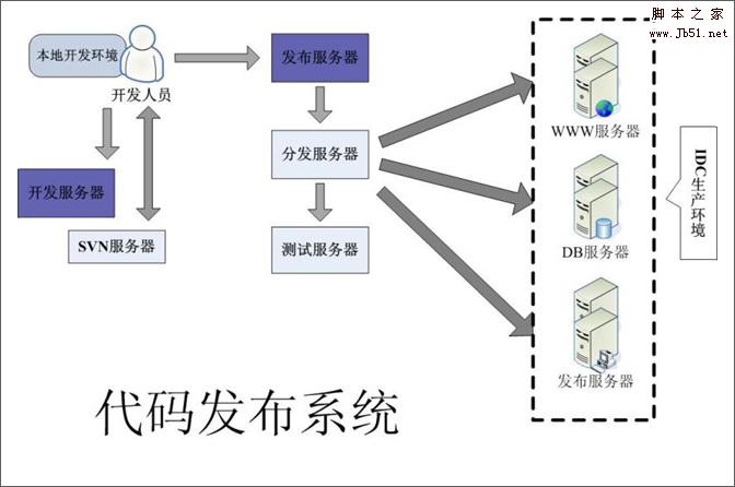 1) 生產(chǎn)環(huán)境的服務(wù)器以虛擬主機方式提供服務(wù),不需要開發(fā)人員介入維護和直接操作,提供發(fā)布系統(tǒng)可以實現(xiàn)不需要登陸服務(wù)器就能把程序分發(fā)到目標服務(wù)器。