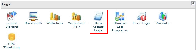 不同主機(jī)使用的面板不太一樣,所以查看原始訪問日志的方法也不太一樣,但是日志記錄的格式都是一樣的,具體查看原始訪問日志的方法請(qǐng)咨詢相關(guān)主機(jī)客服。下面是cPanel面板,通過點(diǎn)擊紅色方框中的按鈕,接著選擇你的網(wǎng)站域名,即可下載原始訪問日志,使用文本編輯器打開即可查看: