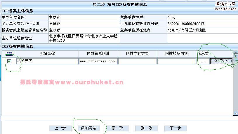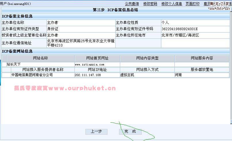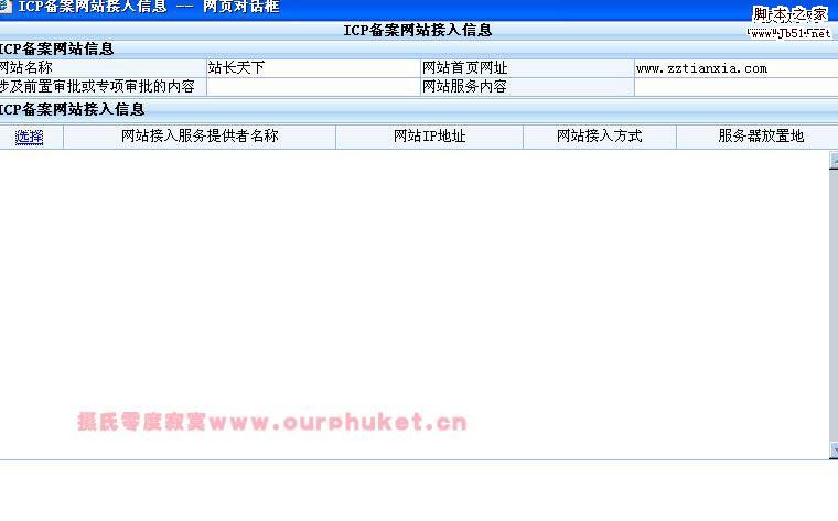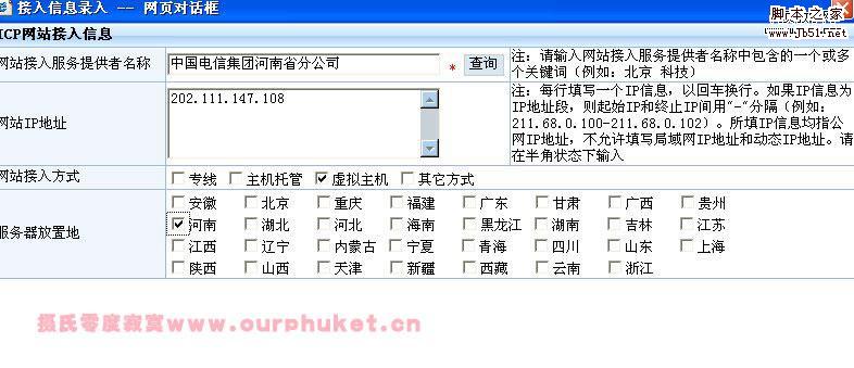 [本文地址:http://www.ourphuket.cn/article/it/182.htm 轉(zhuǎn)載本文,請注明原出處!謝謝?。?br />腳本之家編輯注: 企業(yè)網(wǎng)站最好用企業(yè)的信息備案,如果用個(gè)人的,可能會(huì)遇到退回的情況,一般還要看備案審查人員的心情。