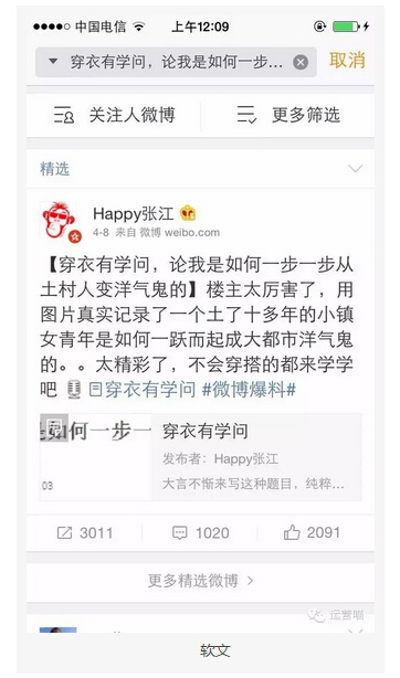 別寫些專門糊弄人的玩意,必須戳中你每一位潛在用戶的點。下文真的不是我們找營銷大號推的文,也不是我們找博主寫的帖子。是豆瓣的一個用戶自己寫了一篇很深刻的著裝變遷史,然后微博大號happy張江轉發(fā)了,然后我們就坐收漁翁之利了。這也引發(fā)了我們發(fā)掘了軟文不可量化的價值,如果經(jīng)歷夠用,真的可以花精力去好好做。