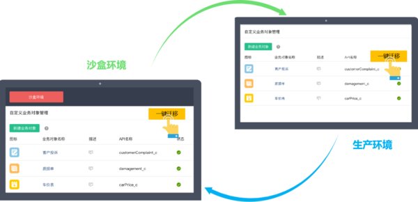 - 沙盒環(huán)境與生產(chǎn)環(huán)境實現(xiàn)雙向一鍵自動遷移,將企業(yè)IT或ISV從大量重復(fù)配置的工作中釋放出來,將更多的精力專注于業(yè)務(wù)的創(chuàng)新上。
