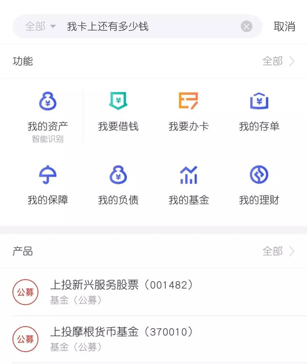 多個(gè)業(yè)務(wù)模塊的整合,讓這一個(gè)小小的搜索窗口,不僅能夠?qū)崿F(xiàn)銀行相關(guān)咨詢服務(wù)、業(yè)務(wù)辦理的功能,而且將理財(cái)、活動(dòng)營(yíng)銷等等內(nèi)容一網(wǎng)打盡,提升了用戶的使用體驗(yàn)自不必說(shuō),對(duì)于銀行業(yè)務(wù)的融合作業(yè),特別是之前那些隱藏較深的業(yè)務(wù)、功能,更是一個(gè)極好的展示,推廣渠道。