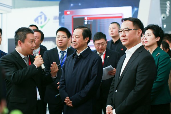 深信服CEO何朝曦為一行領(lǐng)導(dǎo)介紹深信服