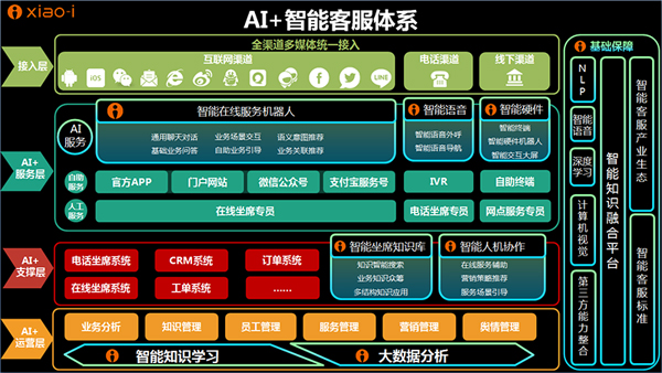 通過與傳統(tǒng)客服體系架構(gòu)對比,會發(fā)現(xiàn)在AI+智能客服體系中,小i并不是真正意義上完全取代傳統(tǒng)客服,而是將人工智能賦能在客服領(lǐng)域上,體系中增設(shè)智能在線服務(wù)機(jī)器人,通過智能知識學(xué)習(xí)與大數(shù)據(jù)提供智能坐席知識庫、智能人機(jī)協(xié)作等舉措,打造智能客服體系。在實用性上,毫無疑問夠擊中企業(yè)優(yōu)化服務(wù)過程中的痛點:一方面,針對高頻次、高重復(fù)率的提問和海量客戶,高性能的智能客服機(jī)器人能夠提高工作效率,極大地降低人工成本。另一方面,如何為客戶輸出全面的高質(zhì)量服務(wù),更好地提升用戶在消費升級當(dāng)中的體驗?智能客服似乎更能滿足當(dāng)下消費者們對于客戶服務(wù)的移動性、即時性和社交性以及多渠道化的需求。