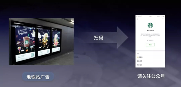 1、每天坐地鐵上班的朋友一定非常熟悉下面的戶外廣告,剛好小編也是星爸爸的忠實粉絲,新活動出來一定要第一時間了解一下啦,二維碼掃一掃后,卻發(fā)現是引導關注公眾號,想要聯系到客服小姐姐或者一鍵購買真心難啊。