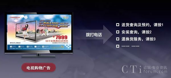 2、小編更愛各種嘗試,看到電視購物廣告55寸全高清電視,這個不錯,可以有。于是乎撥打電話想了解一下,電話接通后竟然是“送貨查詢及預約,請按1、安裝查詢,請按2、退換貨服務,請按3……巴拉巴拉的客服IVR”,于是默默掛斷電話想想還是算了吧
