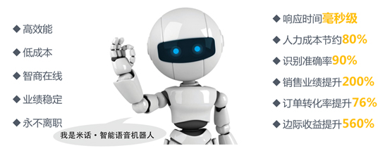 米話·智能語音機器人堪比電銷業(yè)績提升利器。在自動多路外呼、人機交互、多輪對話、智能分類等前沿技術支撐下,米話·智能語音機器人可以通過實時分析客戶語音內(nèi)容,判斷客戶表達意向,模擬營銷人員溝通應答。而且,最關鍵的就是在通話過程中,用戶可隨時打斷交流,主動引導銷售過程,與人工交流幾無差異,客戶體驗感更佳。