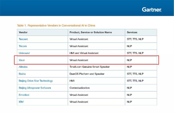 Gartner從2017年開始專門針對中國市場做會話式AI的市場指南,也是基于中國會話式AI巨大的市場規(guī)模和潛力,從2006年開始將這一技術(shù)商用的小i機器人為調(diào)研提供了扎實的數(shù)據(jù)和案例支持。