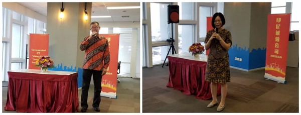 左:印尼僑領(lǐng)郭先生致辭 右:誠伯公司陳律師致辭>
