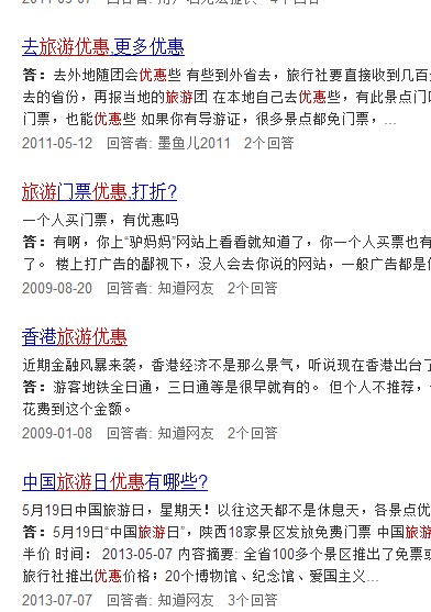 我們的內(nèi)容要具有吸引用戶(hù)來(lái)瀏覽的強(qiáng)制性,好比我們?cè)谧鲆粋€(gè)旅游公司競(jìng)爭(zhēng);那么我們需要拿出什么樣的優(yōu)惠活動(dòng)來(lái)吸引用呢? 我們需要了解用戶(hù)最想關(guān)注的是哪方面的優(yōu)惠? 譬如:怎么樣組團(tuán)更加優(yōu)惠! 三人行優(yōu)惠一個(gè)小朋友!旅游地方的價(jià)格優(yōu)惠等等....... 可以通過(guò)一些百度知道、搜搜問(wèn)答、旅游論壇;讓我們清楚的知道用戶(hù)究竟對(duì)于旅游最關(guān)注的地方是什么?