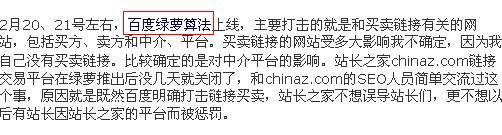 當(dāng)文中提到了綠蘿算法時(shí)候,相信正在瀏覽這篇文章的用戶都會(huì)想知道綠蘿想法的詳細(xì)情況,于是zac就做了這個(gè)詞的錨文本,并且指向他最近的一篇關(guān)于綠蘿算法的博文去,讓用戶能夠了解更多,這樣做能夠有效提高用戶對(duì)網(wǎng)站粘度,seoer在添加錨文本的時(shí)候也應(yīng)該學(xué)習(xí)zac,只有充分滿足用戶的需求的錨文本才是真正有意義的。