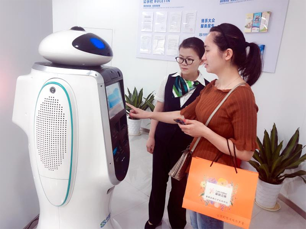 在使用過(guò)程中,“ONE”同時(shí)支持語(yǔ)音對(duì)話和觸摸屏操作。市民余先生有辦理理財(cái)業(yè)務(wù)的需求,當(dāng)他告訴“ONE”后,“ONE”回復(fù)說(shuō):“人家還小,目前還不能給您辦理理財(cái)業(yè)務(wù),但我們有最專業(yè)的理財(cái)經(jīng)理。”它一邊說(shuō)話,一邊就陪著客戶走到了理財(cái)經(jīng)理所在的洽談服務(wù)區(qū),中途還不忘給客戶推薦理財(cái)產(chǎn)品,可以說(shuō)一點(diǎn)兒都沒(méi)有忘記自己的職責(zé)所在。