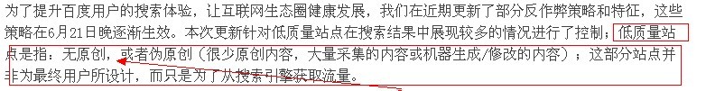 無獨(dú)有偶,6月份百度實(shí)施的大規(guī)模K站的舉動(dòng),以后隨后的官方聲明,基本上也是指向了目標(biāo)網(wǎng)站的人文屬性范疇: