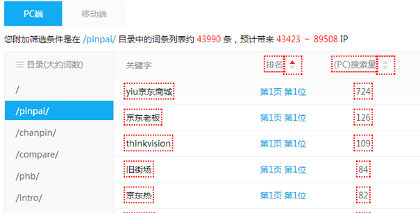 我們可以清晰的看到僅/pinpai/這個(gè)欄目頁,就創(chuàng)建了僅4萬條的關(guān)鍵詞排名,預(yù)估可以帶來4.3-8.9萬個(gè)IP。