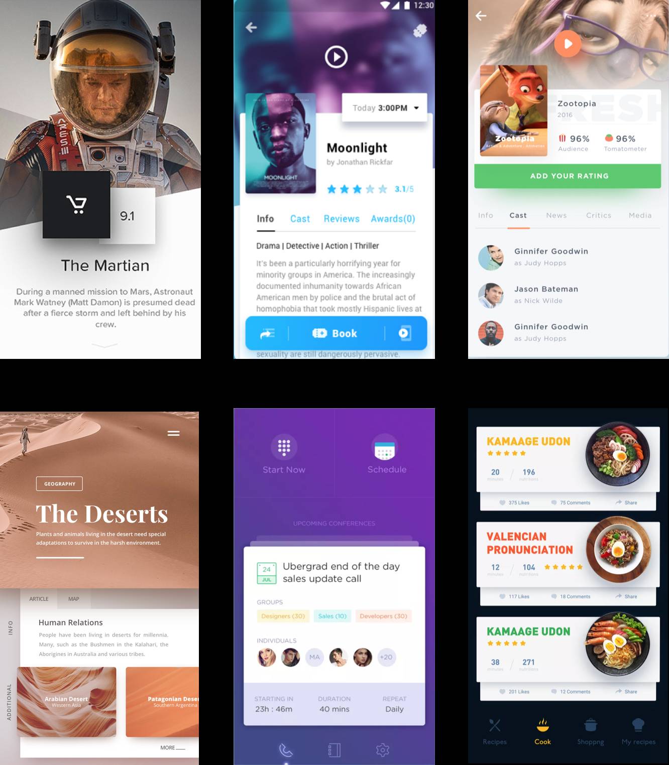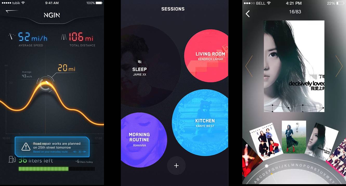 隨著扁平化1.0運用了兩三年,新的扁平化2.0時代,在漸變流行打破了開端,這周研究一些扁平化2.0設(shè)計師的移動端設(shè)計布局形式,整理分析了一些常用的布局形態(tài)。