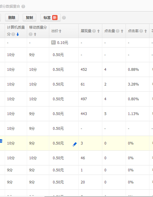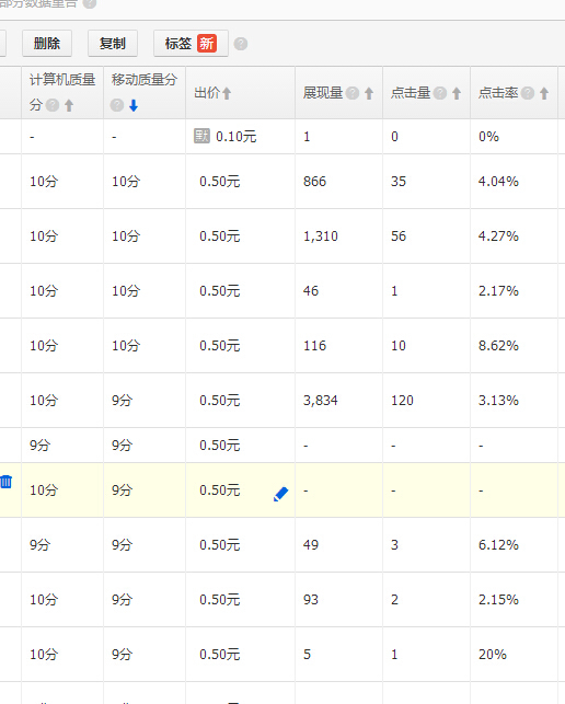 上面這個(gè)是PC端的推廣效果,像這樣的點(diǎn)擊率PC端的質(zhì)量得分能到十分嗎?答案是不可能得。