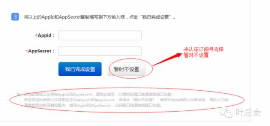 若您現(xiàn)在的微信公眾號現(xiàn)在還沒有AppId和AppSecret,請點(diǎn)擊“暫時(shí)不設(shè)置”,