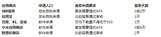 看到應(yīng)用寶說(shuō)一次某應(yīng)用在他家首發(fā)有60萬(wàn)下載量,我就屁顛屁顛的去申請(qǐng)了個(gè)應(yīng)用寶首發(fā),首發(fā)那天我一整天都守在友盟前面度過(guò)的,看了一天友盟,安卓下載量比平時(shí)一天多了……300……我真的沒有說(shuō)謊,就是多300,一個(gè)都不多。不吹牛會(huì)死啊,太失望了,帶著對(duì)騰訊的失望,又申請(qǐng)了小米應(yīng)用商店的首發(fā),這個(gè)稍微靠譜點(diǎn),首發(fā)給了4天廣告位,4天總共安卓下載量有8000,后來(lái)我又申請(qǐng)了360首發(fā)、聯(lián)想樂商店首發(fā),效果和應(yīng)用寶沒有什么差別,慘不忍睹,再也不相信首發(fā)了。做了應(yīng)用市場(chǎng)首發(fā)清單,供大家參考: