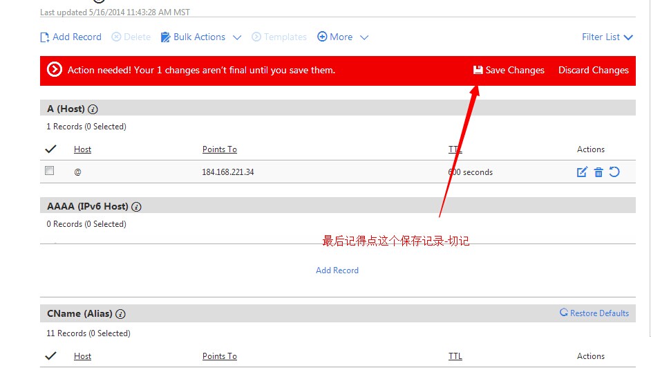 4:完成這一步之后你在godaddy.com的工作就已經(jīng)完成了,之后提到你所改的DNS那解析你的域名了。