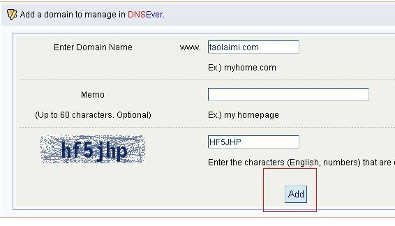 2:如圖點擊Add Domain添加域名,Add a domain to manage in DNSEver. 是添加單個域名,Add Bulk Domains 是批量添加域名。