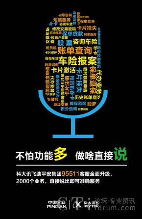 業(yè)務覆蓋最全。平安集團已發(fā)展成為融保險、銀行、投資等金融業(yè)務為一體的整合、緊密、多元的綜合金融服務集團。為統(tǒng)一品牌、整合服務,向用戶提供一站式門戶,95511熱線中涵蓋了產(chǎn)險、壽險、銀行、信用卡、證券等10大類業(yè)務,共2000多個業(yè)務節(jié)點。而由此帶來的問題是,此前任何用戶撥打95511時,都必須面對平均層級深度達到五級的非常復雜、繁瑣的按鍵式語音菜單,可想而知在這樣的交互方式下用戶體驗受到極大挑戰(zhàn),已經(jīng)明顯制約了95511效率和效益的提升。科大訊飛提供的自由說智能語音導航方案解決了這個難題,基于語音識別和語義理解,使菜單扁平化,用戶不需要逐層按鍵選擇,只需說出自己的需求就能直達相應業(yè)務。在用戶對于全金融業(yè)務服務的個性化需求表述中,要求精確的解析用戶具體的意圖,或?qū)ι胁煌暾男枨筮M行有效引導,這對系統(tǒng)的自然語言理解能力和人機交互設計顯然有極高的要求,據(jù)悉這在業(yè)界是首次實現(xiàn)如此規(guī)模業(yè)務覆蓋的全金融智能語音門戶。