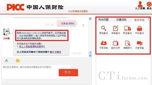 Web客服整合了PICC原有的導(dǎo)航功能,為用戶使用提供便利