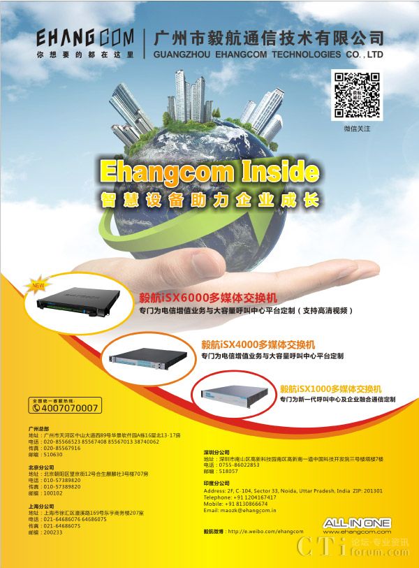 廣州市毅航通信技術有限公司是專注于下一代通信網(wǎng)絡(NGN+3G+IMS)的通信產(chǎn)品設計、研發(fā)、銷售以及整體解決方案的供應商。公司座落于國家級高新技術產(chǎn)業(yè)開發(fā)區(qū)之一的廣州華景軟件園,并在印度、香港、北京、深圳、上海、成都等地設有辦事處?! ?/p>