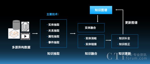 我們所說的多源異構數(shù)據(jù),涵蓋PDF、PPT、Word、紙質(zhì)文檔,還有網(wǎng)絡上的信息。知識抽取主要是指抽取關系、抽取屬性、抽取事件,抽取完了以后進行知識融合。知識融合方面,一個是做實體消岐,一個是做實體鏈接,另外還要做實體融合。先看是不是有一樣的實體可以對齊,如果有,那就將它們?nèi)诤掀饋?,繼而進行消岐,再創(chuàng)建鏈接,然后去補全、校正這些知識,這就形成了知識圖譜。這是一個循環(huán)的過程,整個知識圖譜會一直演進,越來越大,不斷更新。加上時間維度,它就變成了時序知識圖譜。