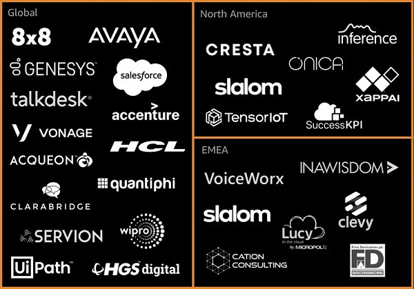 擴(kuò)張的全球特征之一是合作伙伴數(shù)量的急劇增加,特別是那些服務(wù)于全球客戶群或歐洲、中東和非洲地區(qū)客戶的合作伙伴。如下圖所示,這包括一系列新的技術(shù)合作伙伴,如8x8、Avaya、Salesforce和Talkdesk,以及咨詢合作伙伴,如Servion和Wipro。