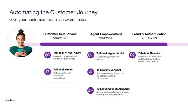 在與行業(yè)分析師的簡報(bào)和新聞稿中,Talkdesk討論了與AWS的新合作關(guān)系,其背景是2020年將AI產(chǎn)品推向市場,如圖所示。Talkdesk首席產(chǎn)品官Charanya Kannan在回復(fù)一封電子郵件時(shí)說:目前我們使用AWS CCI來實(shí)現(xiàn)座席授權(quán)自動(dòng)化AI應(yīng)用程序。[我們計(jì)劃]在未來還將AWSCCI用于Talkdesk Virtual Agent和Talkdesk Guardian??蛻艨梢赃x擇單獨(dú)或組合使用TalkdeskiQnativeAI、AWSCCI或其他云提供商的聯(lián)絡(luò)中心AI。
