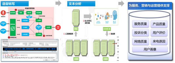 使用NLP(自然語言處理)工具,將用戶通話語音轉(zhuǎn)譯成可視、可檢索、可分析的文字,實現(xiàn)用戶通話錄音由聽轉(zhuǎn)看,并可進(jìn)行后續(xù)一系列的挖掘分析和數(shù)據(jù)應(yīng)用。
