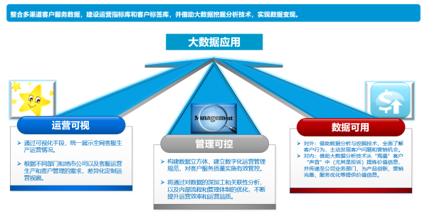 價值傳導(dǎo)是指:借助大數(shù)據(jù)分析技術(shù),從海量用戶聲音中(尤其是用戶投訴)提煉價值信息,并傳遞至公司相關(guān)部門,為產(chǎn)品創(chuàng)新、營銷完善、網(wǎng)絡(luò)優(yōu)化、服務(wù)提升等提供價值信息。