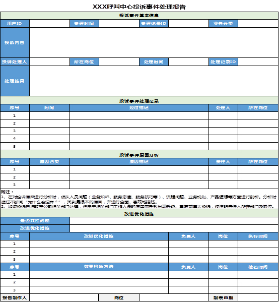 - 此表格為人工手動(dòng)制作,一個(gè)投訴填制一張表格。
