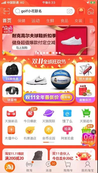 天貓首頁上的定制化首頁,通過千人千面模式得出。
