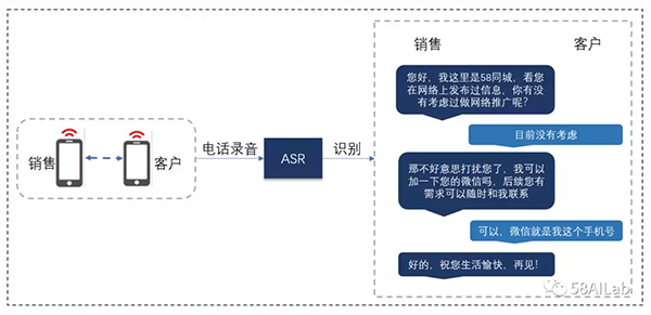 同時智能語音質(zhì)檢系統(tǒng)提供了通用的語音分析能力,除了目前應(yīng)用的語音質(zhì)檢場景外同樣的技術(shù)也可以用于C2B平臺語音分析場景,58同城作為平臺方為商家以及客戶搭建了方便快捷的溝通途徑,其中語音電話也是一大重要的溝通方式,對于C端客戶與B端商家的語音分析可提供如低質(zhì)通話過濾、客戶需求挖掘分析等多種業(yè)務(wù)能力。C2B的語音一般是雙聲道,不需要做語音分離和角色識別,可以很好地區(qū)分客戶和商家說話內(nèi)容,因此具有更好的分析效果。