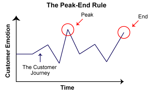 為了回答這個問題,我們需要回到Kahneman的研究,該研究表明,在任何體驗(yàn)中,人們都會記住他們所感受到的最高記憶和最終記憶。這也稱為峰值規(guī)則。