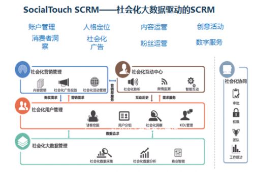 Social Touch Social CRM是一個大數(shù)據(jù)驅(qū)動的社會化關(guān)系管理平臺??梢栽谄髽I(yè)不同的營銷場景中滿足企業(yè)在社會化營銷鏈條中的階段性需求,比如內(nèi)容營銷、社會化廣告投放、社會化活動管理以及觸發(fā)式的社會化互動中心,包括社會化輿情監(jiān)測和智能互動等。結(jié)合時趣強大的數(shù)據(jù)洞察與預(yù)測技術(shù),企業(yè)可以以數(shù)據(jù)為導(dǎo)向,制定品牌營銷策略,開展精準互動營銷,并對營銷效果進行監(jiān)控和衡量,從而全面提升企業(yè)社會化營銷水平。