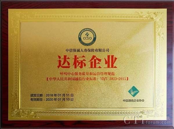 2018年1月中信保誠人壽營運(yùn)部呼叫中心正式通過由國家部委(工信部)官方審批頒布的首個(gè)呼叫中心行業(yè)標(biāo)準(zhǔn)《呼叫中心服務(wù)質(zhì)量和運(yùn)營管理規(guī)范標(biāo)準(zhǔn)》。通過此次標(biāo)準(zhǔn)認(rèn)證,進(jìn)一步提升呼叫中心的價(jià)值與服務(wù)水平,構(gòu)建了更加規(guī)范化、標(biāo)準(zhǔn)化的運(yùn)營體系,成為保險(xiǎn)業(yè)乃至金融業(yè)首家通過此服務(wù)規(guī)范的企業(yè),構(gòu)建卓越服務(wù)品牌示范單位。