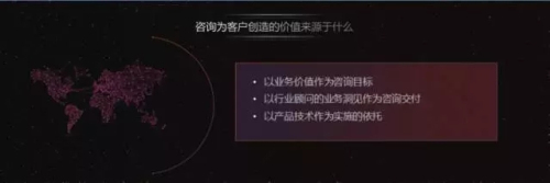 第一,咨詢的目標(biāo)不是產(chǎn)品的交付、不是客戶的驗(yàn)收,而是指業(yè)務(wù)價(jià)值的實(shí)現(xiàn)。比如效率的提升、滿意度的提升、話量的下降或者說(shuō)用戶黏度的提升,所有體驗(yàn)角度上的客戶價(jià)值作為整個(gè)咨詢的目的,而非是做一件事,是要做成什么樣的事;第二,要以行業(yè)顧問(wèn)和管理者的業(yè)務(wù)洞見(jiàn)作為咨詢交付。并不是以這個(gè)軟件安裝成功可以操作,甚至某些人會(huì)按這些按紐了作為交付的目的,而是應(yīng)該以顧問(wèn)和管理者之間碰撞之后能夠確認(rèn)的業(yè)務(wù)洞見(jiàn)作為本次咨詢的交付結(jié)果。如果我們是針對(duì)話量下降的,那么我們至少應(yīng)該能夠看到在所有的發(fā)現(xiàn)當(dāng)中能夠讓我們走向這個(gè)目標(biāo)的一些洞見(jiàn),并且能夠和管理者碰撞出來(lái);
