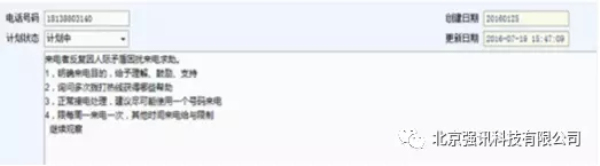B、既往來電回復(fù)計劃:多次來電者,系統(tǒng)回顯示其歷史咨詢記錄,并可制定來電回復(fù)計劃,確保每次來電回復(fù)信息統(tǒng)一性;