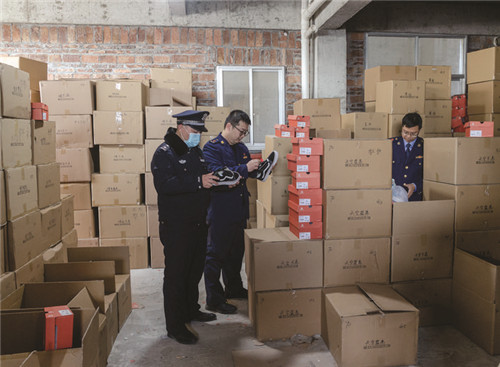 1月13日,莆田市市場(chǎng)監(jiān)管局執(zhí)法支隊(duì)聯(lián)合黃石派出所查獲涉嫌侵權(quán)品牌運(yùn)動(dòng)鞋 2.9萬(wàn)多雙。