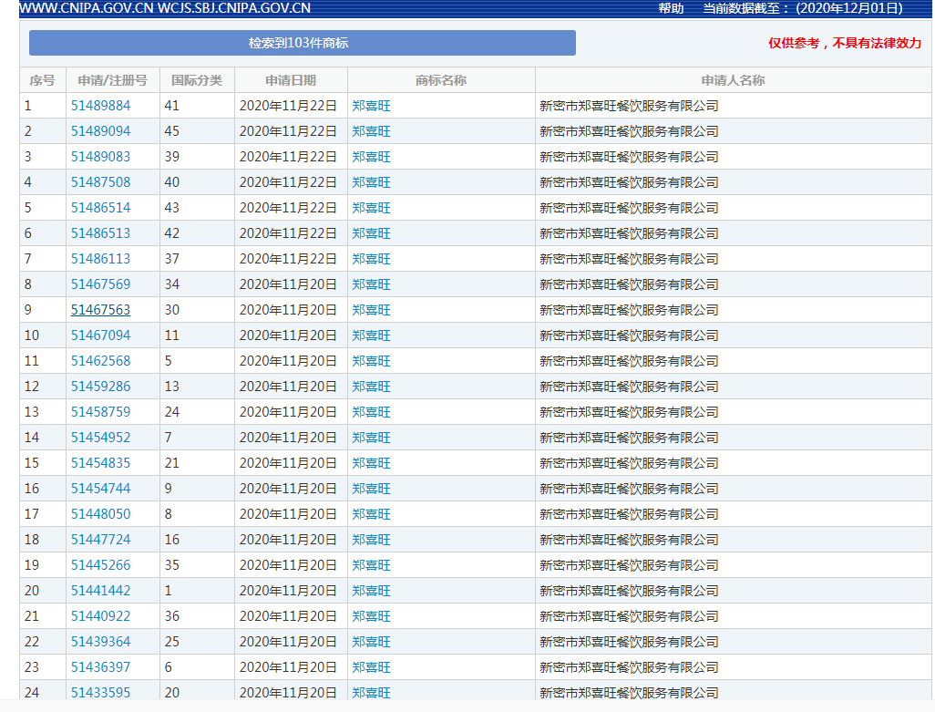 后來(lái)為了保護(hù)“鄭喜旺燒烤”這一品牌,鄭喜旺和鄭保軍把容易讓人誤解的名字都申請(qǐng)了商標(biāo)來(lái)保護(hù)自己。