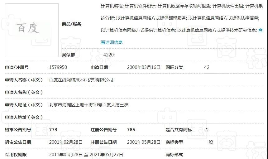 迄今為止,百度已經(jīng)在多個類別上注冊了一系列“百度”、“baidu”等商標(biāo)。