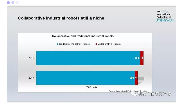 World Robotics于2019年分析了協(xié)作機(jī)器人(cobots)的市場(chǎng),盡管協(xié)作機(jī)器人(cobots)引起了各大媒體的強(qiáng)烈關(guān)注,雖然其安裝的單位數(shù)量對(duì)比傳統(tǒng)機(jī)器人仍然非常低,僅占3.24%,不過(guò)從增長(zhǎng)率看,協(xié)作機(jī)器人的浪潮已悄然開(kāi)始,從17年到18年,其增長(zhǎng)率高達(dá)23%,國(guó)內(nèi)協(xié)作機(jī)器人在媒體端儼然成為制造業(yè)寵兒。