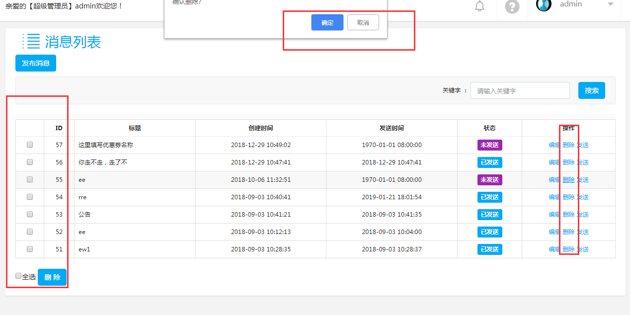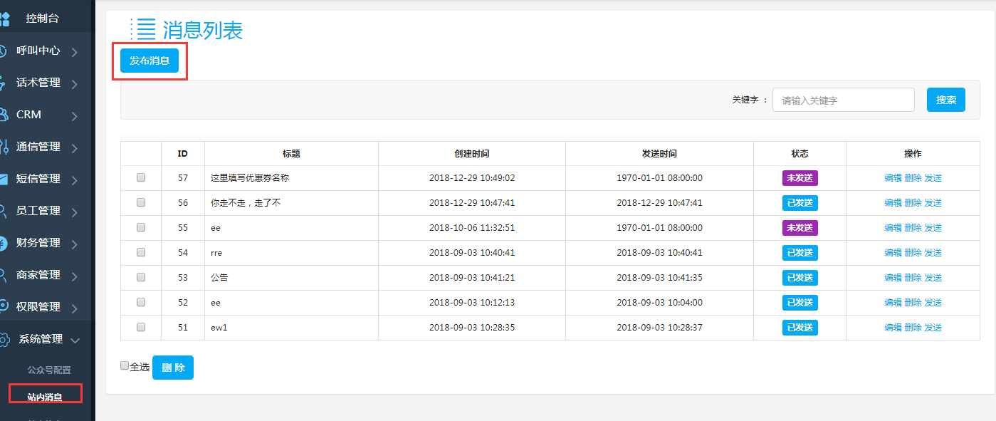 右側(cè)菜單-系統(tǒng)管理-站內(nèi)消息,點(diǎn)擊進(jìn)入消息列表界面