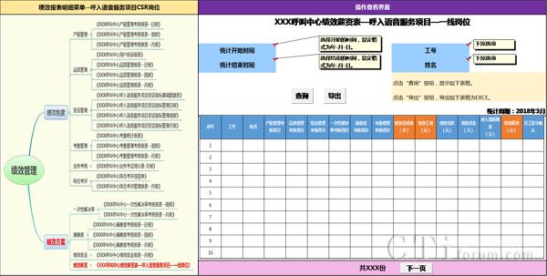 呼叫中心各崗位工作人員均可查詢本崗位所對應(yīng)的績效考核類報表,包括:績效制度類考核報表和績效方案類考核報表,具體詳見“報表版式梳理”部分的報表清單。
