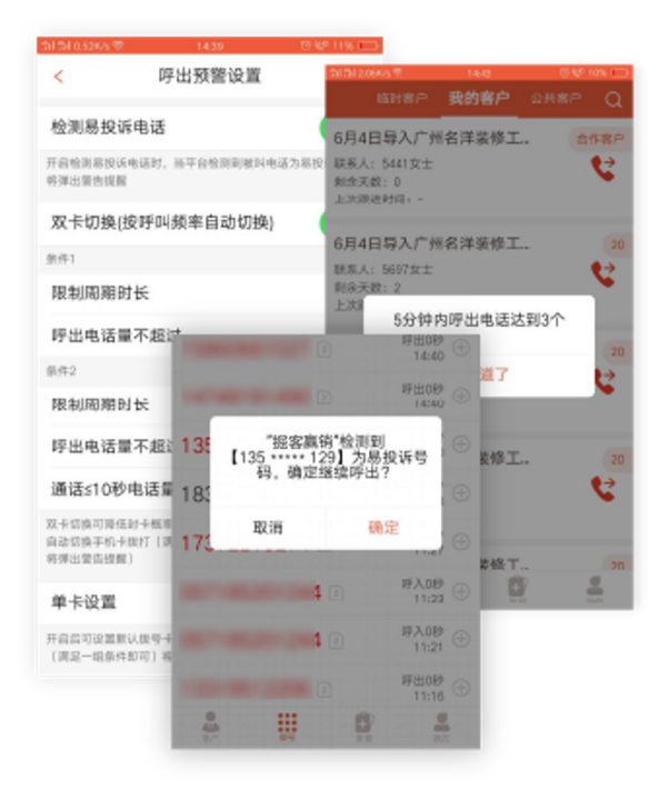自動(dòng)檢測(cè)易投訴被叫號(hào)碼,主動(dòng)警示,降低因投訴被封號(hào)的幾率。
