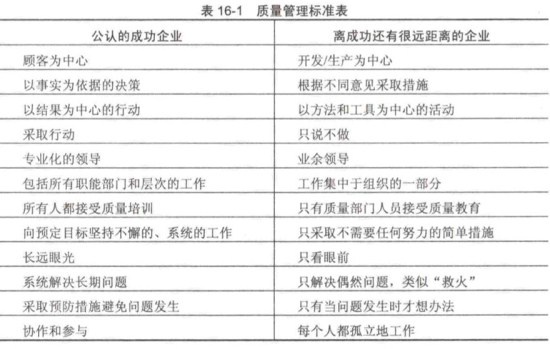 表16-1為質(zhì)量管理標(biāo)準(zhǔn)表。